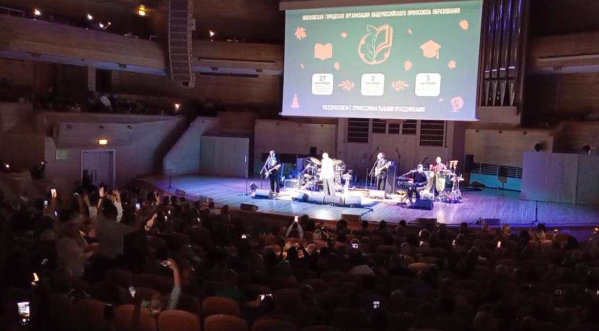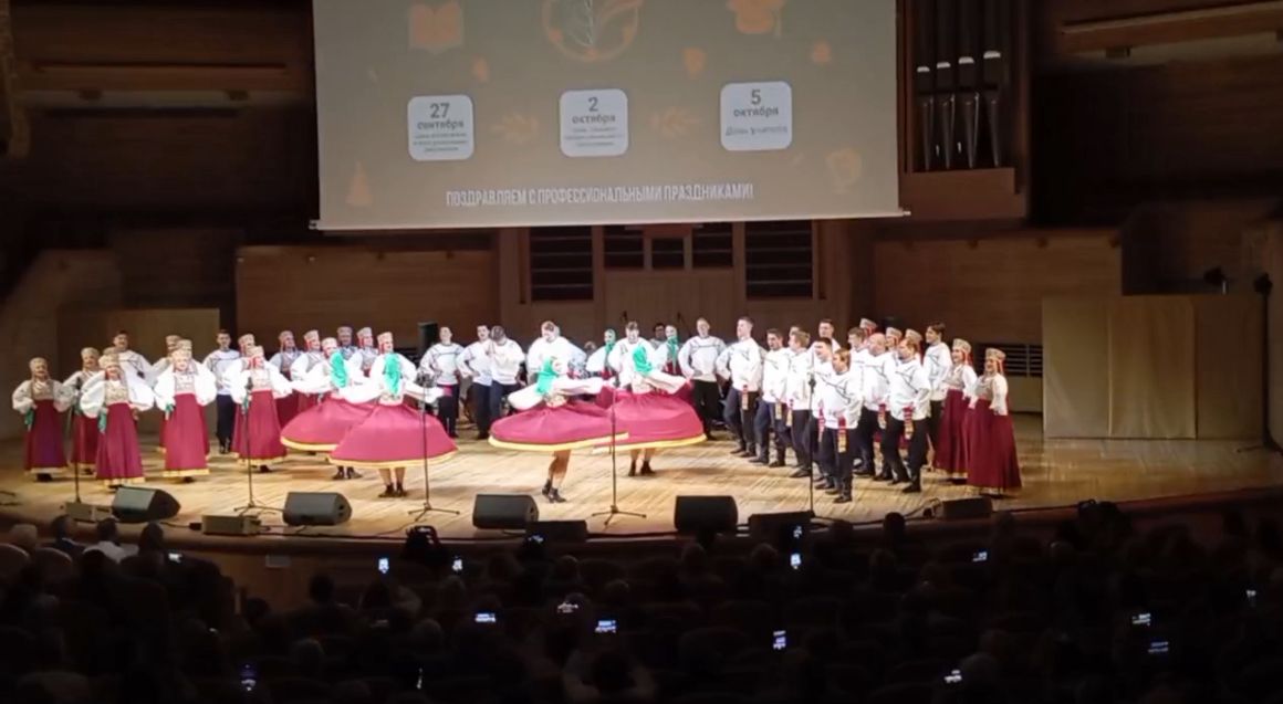 4 октября в Московском международном Доме музыки Анна Николаевна Шатилова и Константин Сергеевич Гужевкин торжественно открыли концерт, на котором звучали слова благодарности и поздравления учителям и воспитателям.